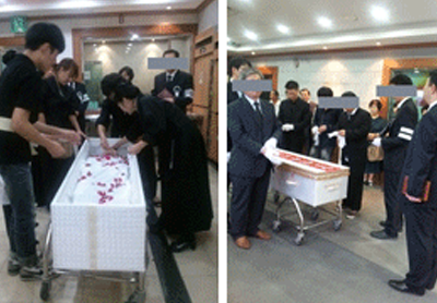 대렴을 하지 않으므로 고인의 생전 모습을 보며 이별을 나눈다.
